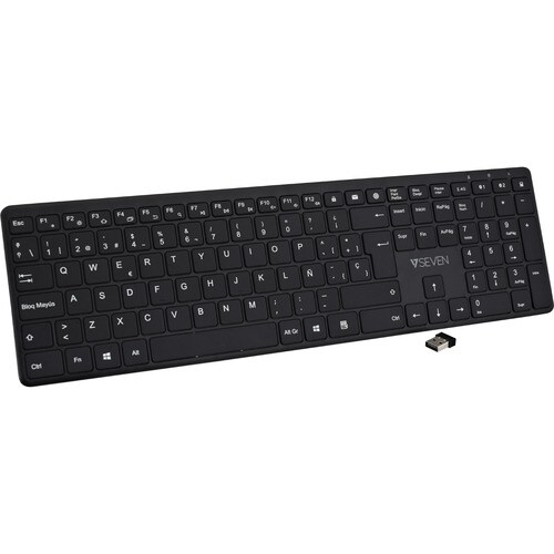 V7 KW550ESBT Keyboard - Wireless Connectivity - USB Interface - Spanish - QWERTY Layout - Black - Scissors Keyswitch - Bluetooth/RF - 2.40 GHz - AAA Battery Size Supported Less